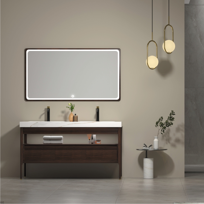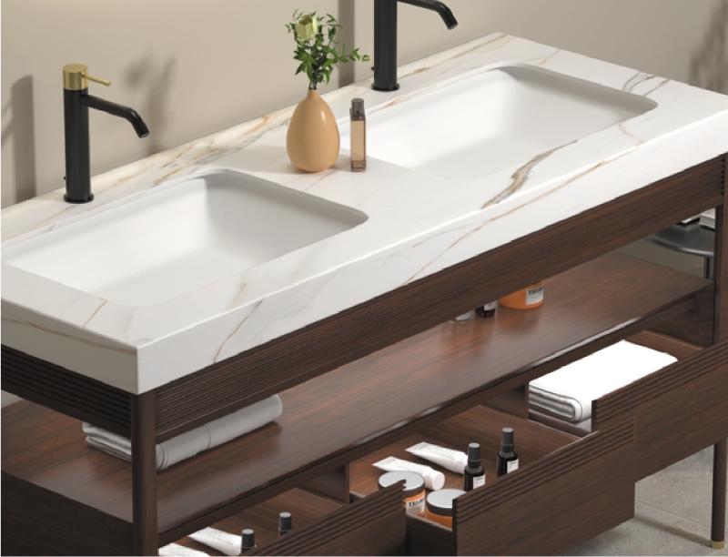 Painted multilayer solid wood panel, natural marble countertop, ceramic basin, LED mirror