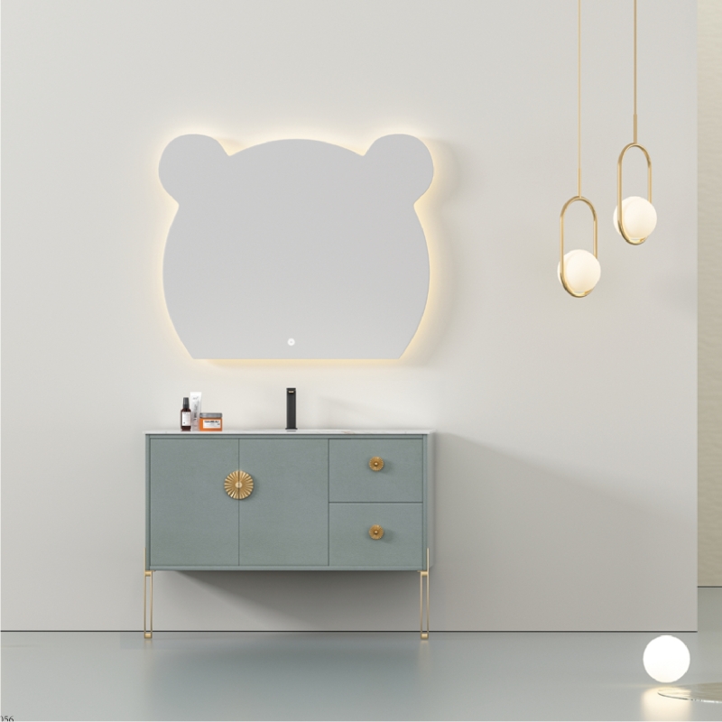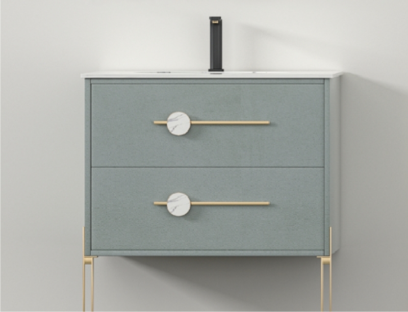 Painted multilayer solid wood panel, natural marble countertop, ceramic basin, LED mirror
